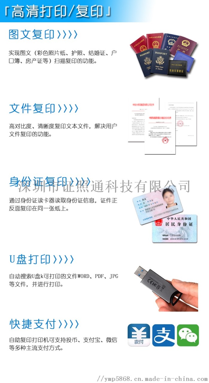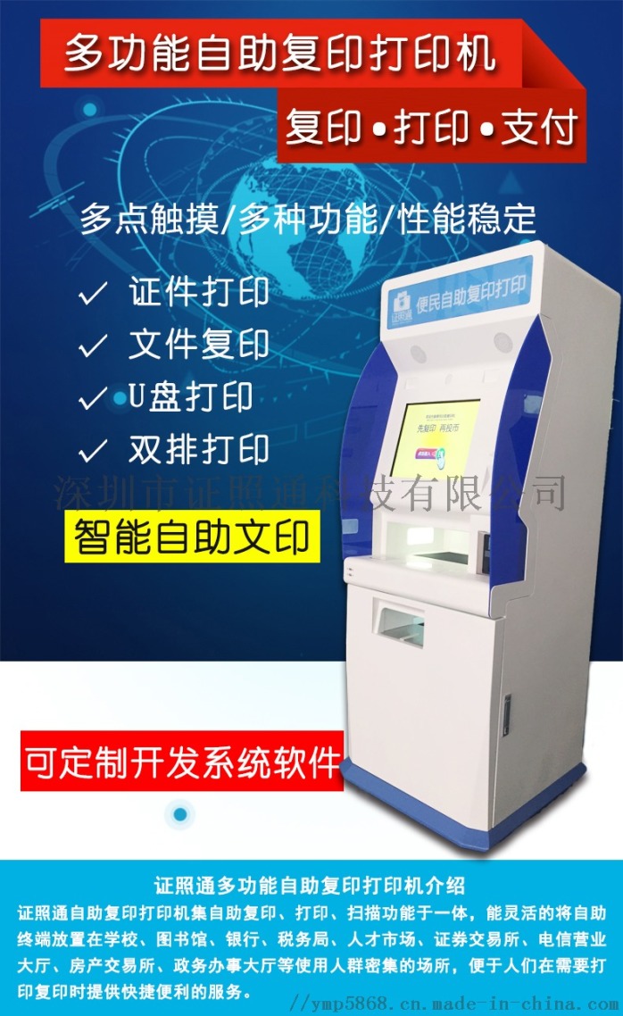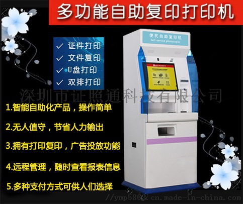 深圳市证照通科技是便民自助复印打印机的生产厂家,专业生产自助照相机、自助证jian照机器、自助拍照机、自助复印打印机。联系人杨经理